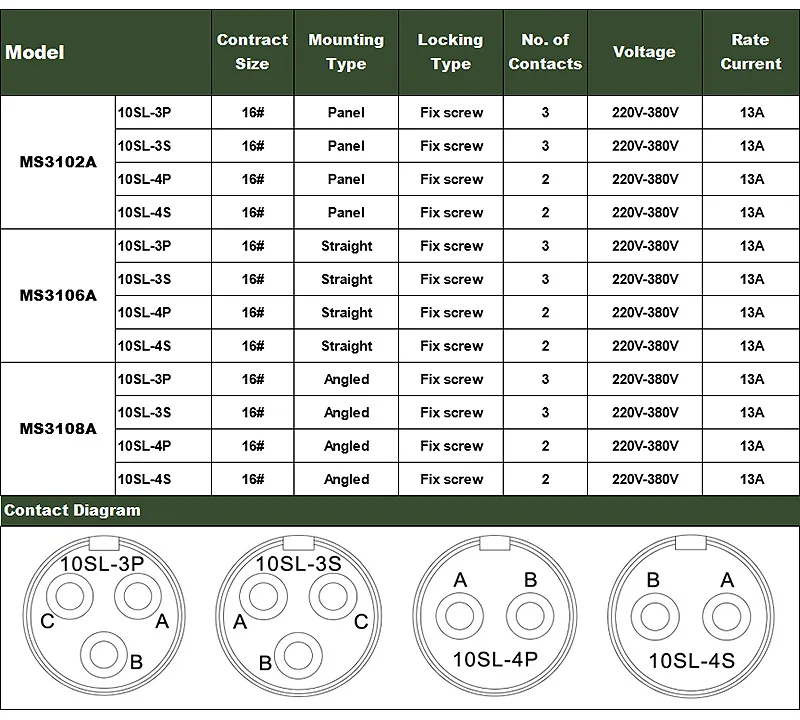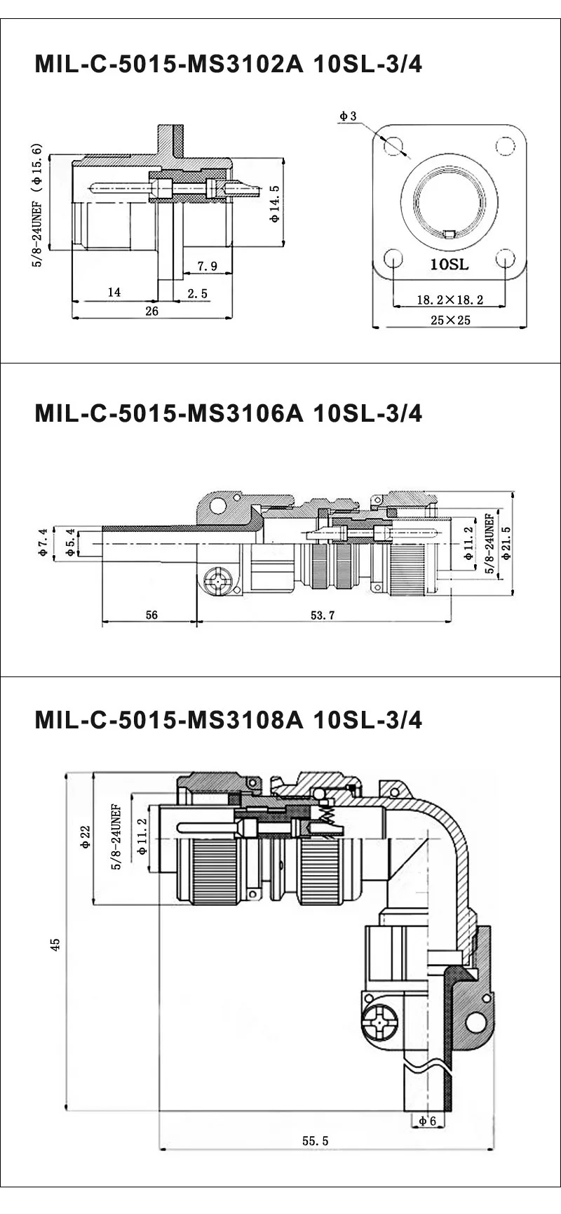 10SL-3 10SL-4 5015 Circular Connector MIL-C MS3106A MS3108 MIL STD Plug&Socket 3102A Military Specification Connectors