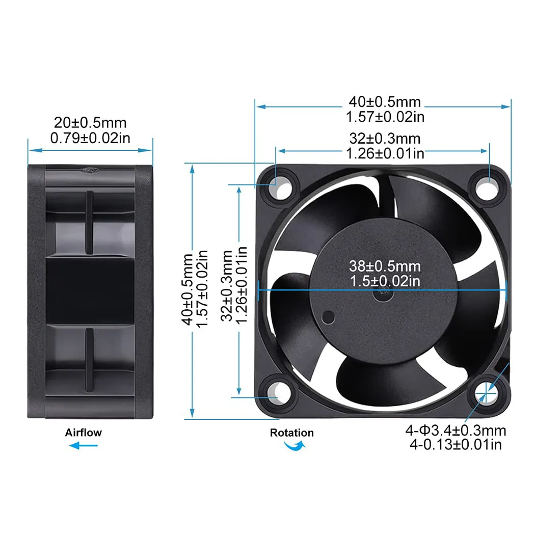 4CM 2Pin Brushless Cooler DC 24V 12V 5V 40x20mm Mini Computer Case Cooling Fan 4020 Cooling Fan Replacement for 3D Printer