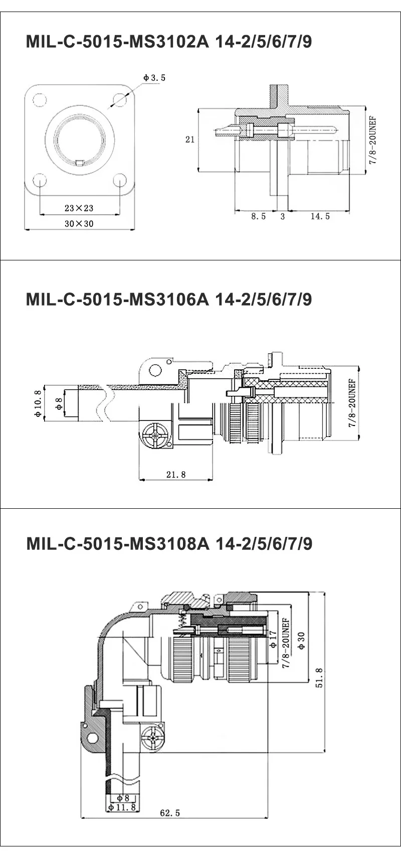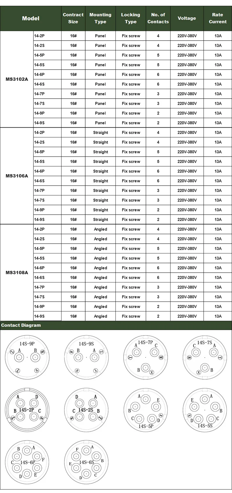 14S-7 14S-9 MIL-C Circular Connector MS3102A MS3106A MS3108A Plug&Socket 5015 MIL STD Military Specification Connectors