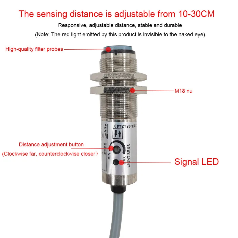 CDD-11N Photoelectric Switch Proximity Sensor NPN PNP Distance Adjustable Infrared Laser Diffuse Reflection DC12-24V CDD-11P