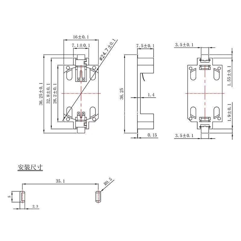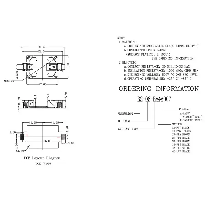 CR2032 gold-plated patch button battery holder CR2450 button battery box BS-6 white 3V SMT high temperature resistance