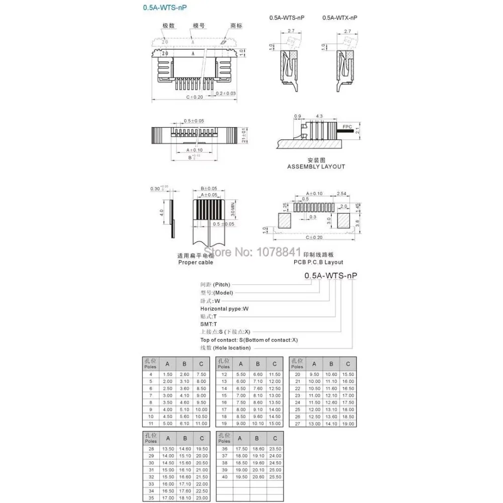 FPC FFC 0.5mm Pitch 21 Pin Drawer Type Ribbon Flat Connector Bottom Contact