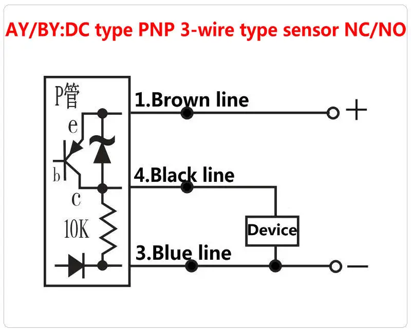 LJ12A3-4-Z/AY: PNP NC 3-Line DC type 12mm diameter ; 4mm detection distance