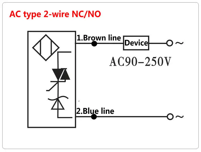 LJ12A3-4-J/DZ: NC 2-Line AC type 12mm diameter ; 4mm detection distance
