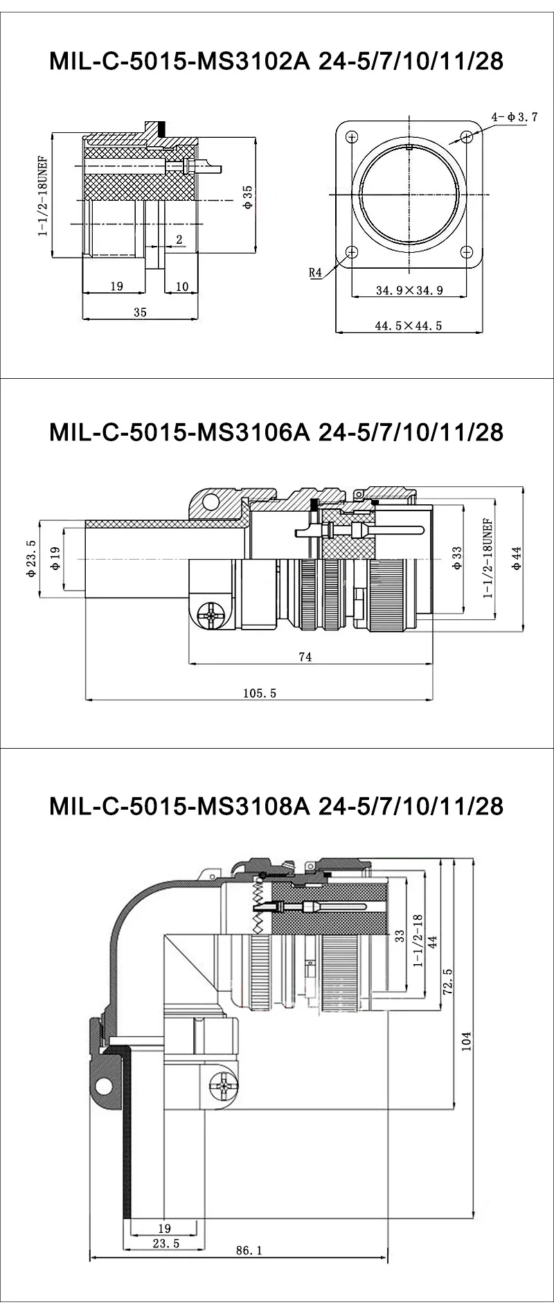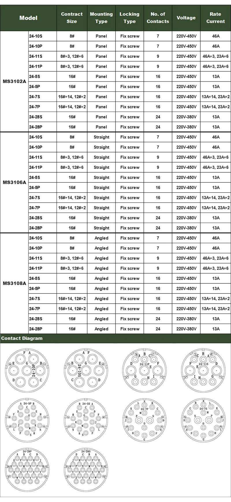 MIL STD 5015 MIL-C Military Specification Connectors 24-5 24-10 24-11 MS3102 MS3106 MS3108 Plug&Socket