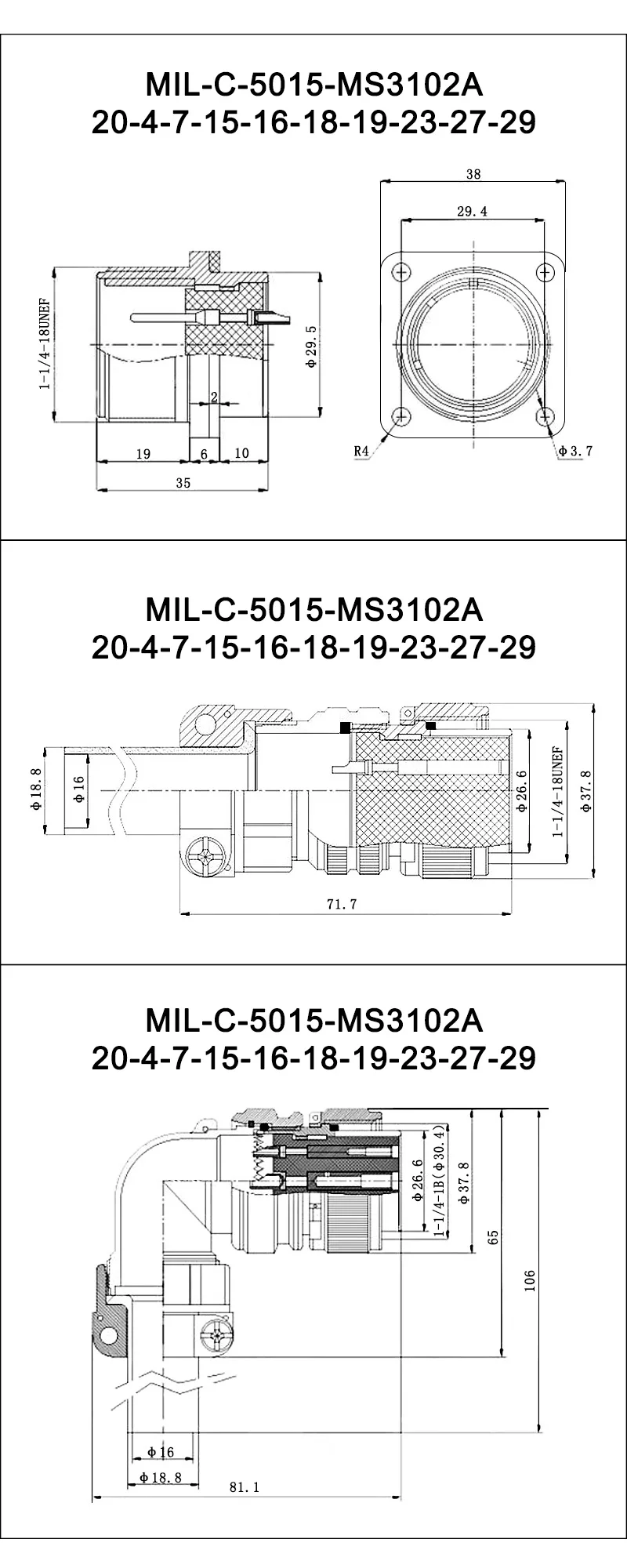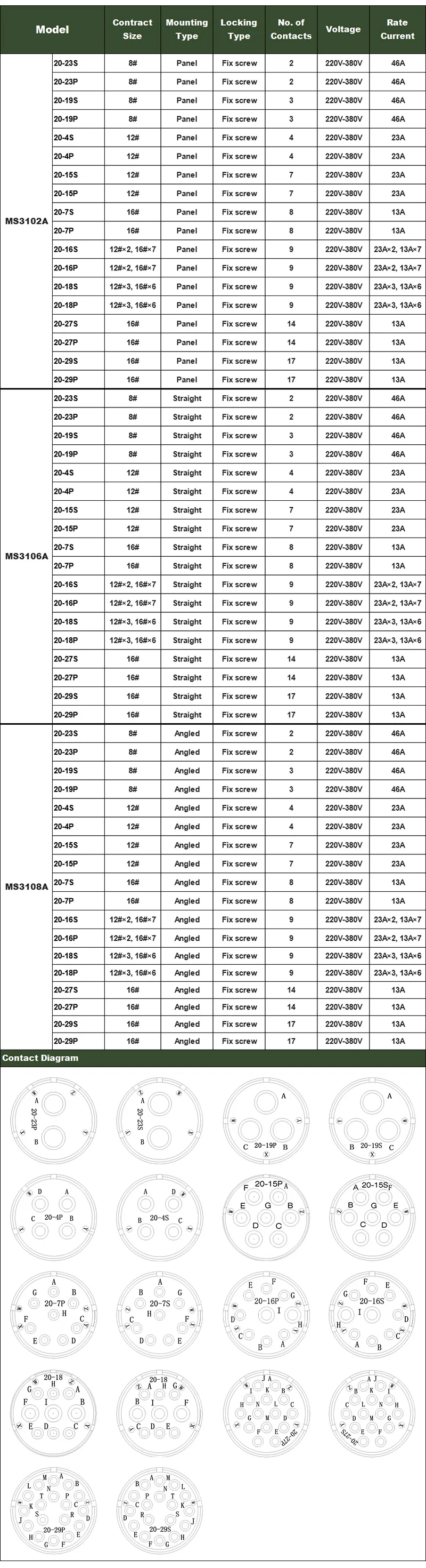 MS3102 MS3106 MS3108 MIL-C Circular Connector 20-18 20-27 20-29 Military Specification Connector MIL STD 5015 Plug&Socket
