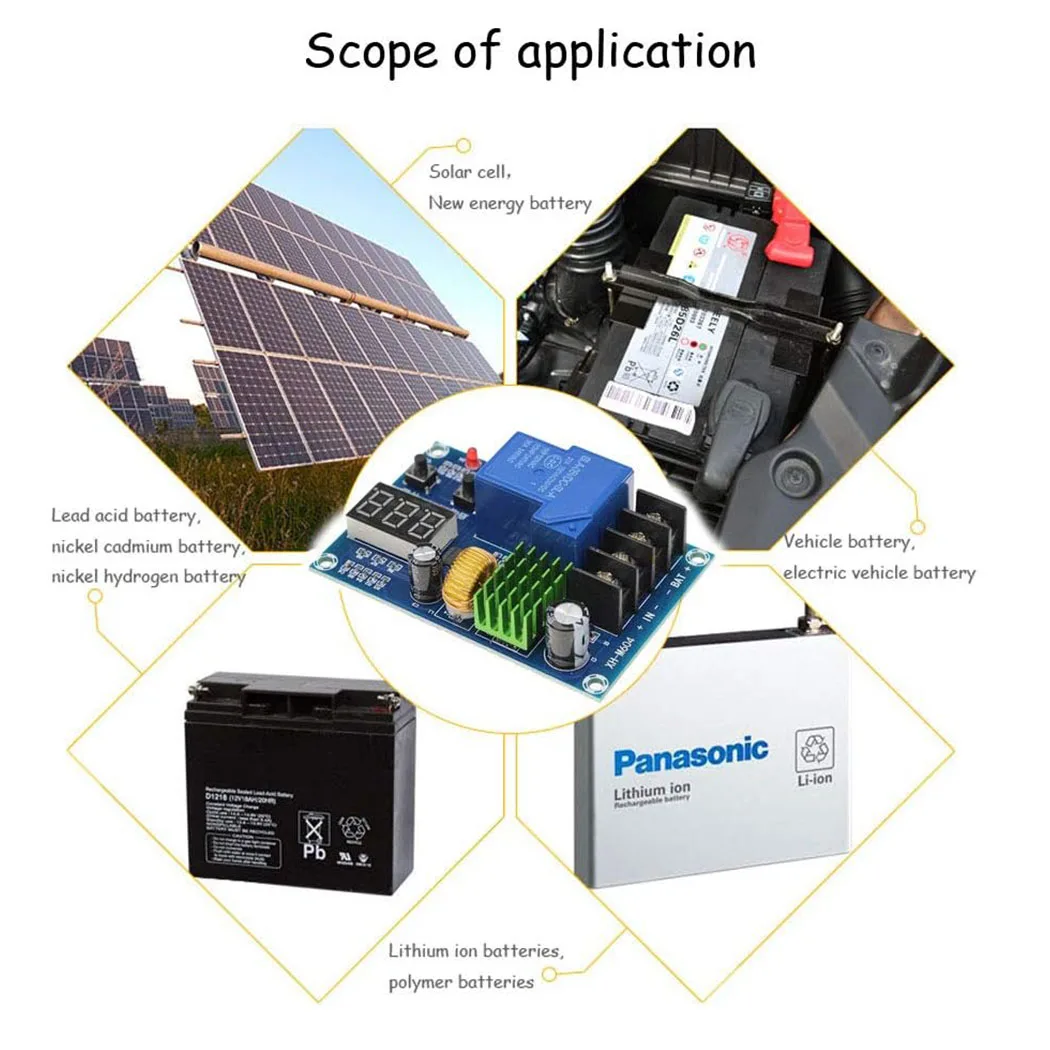 【Easy to Use】: On-board momentary push button to set the charging initiation voltage and charging stop voltage. Input Voltage:DC 6-60V (max 80V), Display Precision:0.1V, Control Precision:0.1V, Output Type:direct output