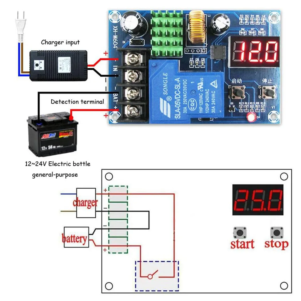 【LED Screen Display & Low Power Consumption】: 3 digit red LED display the parameter. Exceeding the set stop voltage value, the relay will cut off the charger charging, no need to manually pull the charger, automatically power off, can not save energy, and can extend the battery life and prevent overshoot