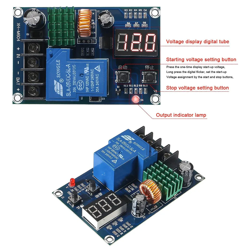 【Easy to Use】: On-board momentary push button to set the charging initiation voltage and charging stop voltage. Input Voltage:DC 6-60V (max 80V), Display Precision:0.1V, Control Precision:0.1V, Output Type:direct output